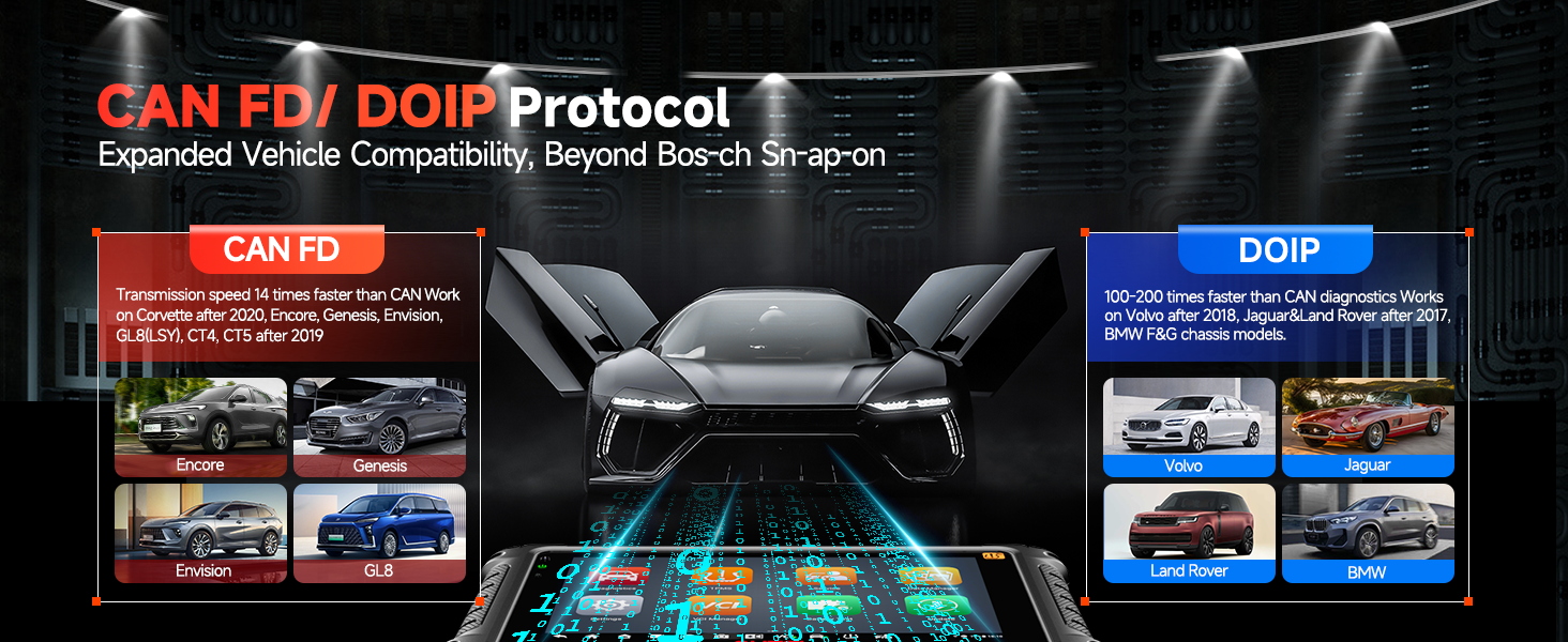 Dispozitivul acoperă peste 15.000 de modele auto fabricate între 1996 și 2025, incluzând mărci americane, europene și asiatice, fiind compatibil cu cele mai noi protocoale de comunicare utilizate de producători (inclusiv DoIP și CAN FD).